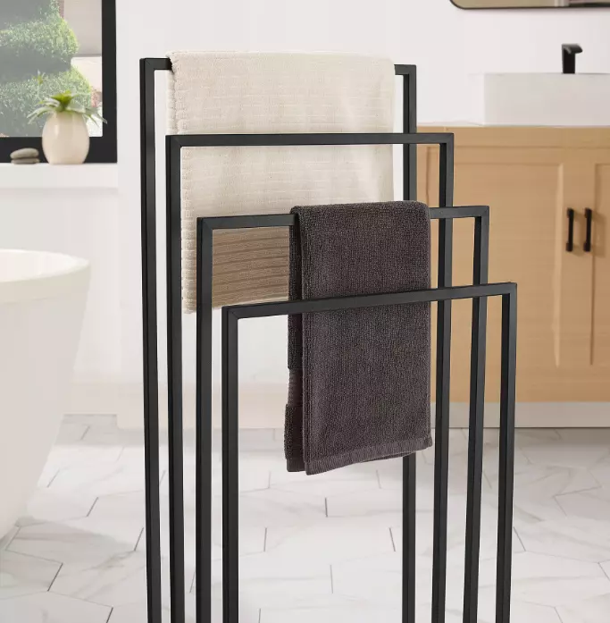 Практична й стильна підлогова вішалка для рушників стане чудовим рішенням для ванної кімнати чи пральні. Вона допоможе підтримувати порядок, забезпечить зручний доступ до рушників та створить умови для їх швидкого висихання.