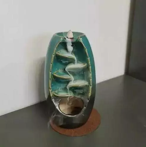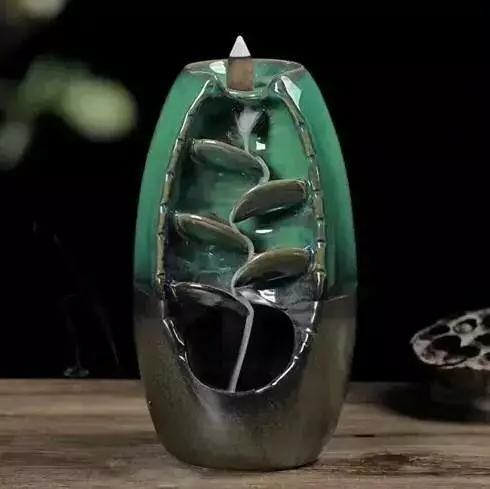 Цей унікальний ароматичний камін має простий, але елегантний дизайн із п’ятьма внутрішніми виступами, через які спокійно стікає дим від запаленої ароматичної палички. Завдяки особливій конструкції утворюється ефект водоспаду — дим повільно обертається та спадає вниз, створюючи заспокійливу і захоплюючу картину.