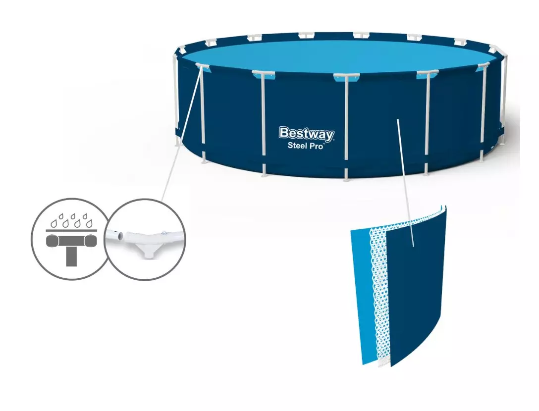 Басейн виготовлено з інноваційного тришарового ламінованого ПВХ Tritech™, який відрізняється стійкістю до ультрафіолету, механічних пошкоджень і впливу хлору. Йому не страшні ні палюче сонце, ні активні діти — він збережеться як новий надовго.