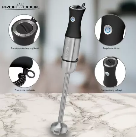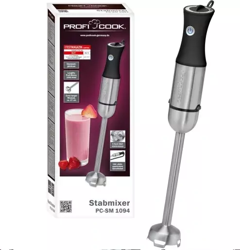 Ручка Profi Cook PC-SM 1094 изготовлена из износостойкого пластика со вставками из нержавеющей стали. Материал погруженной ножки — металл.