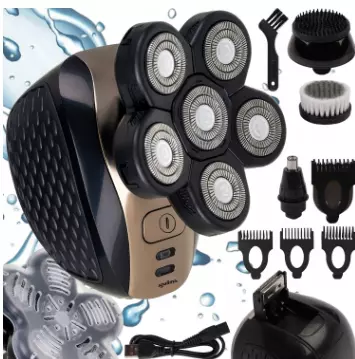 6 в 1 — повний набір для чоловічого догляду. Бритва, триммер для бороди, насадки для носа, вух, бакенбардів і обличчя – усе в одному приладі.