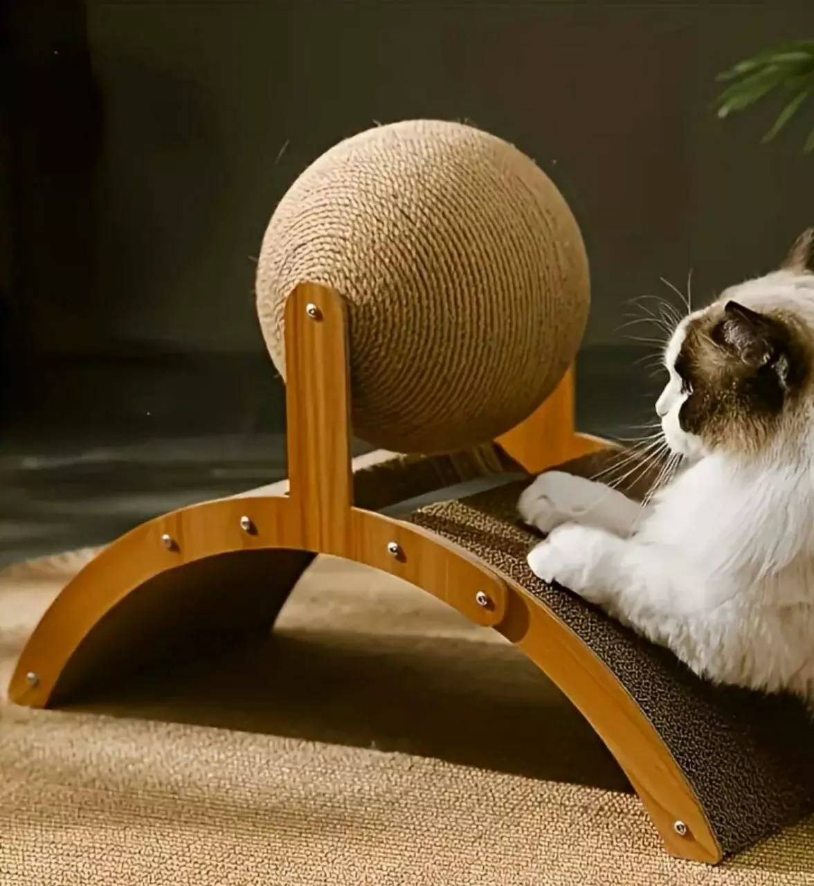 Дерев’яна кігтеточка для кішок 2 в 1 з м’ячиком