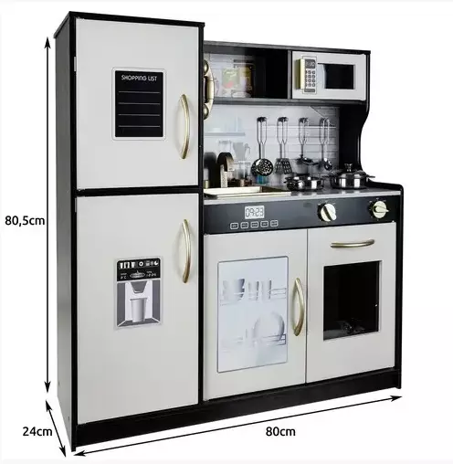 Кухня виготовлена з натурального дерева, що гарантує довговічність, міцність і безпечність для дітей. Акуратна обробка та естетичний дизайн роблять її не лише ігровим набором, а й стильним елементом інтер’єру дитячої кімнати.