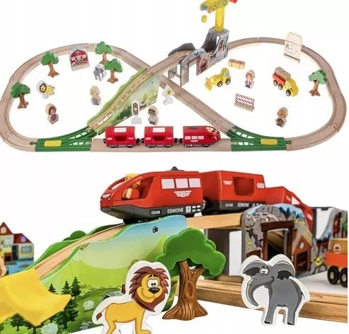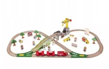Дерев'яний поїзд — чудова ідея для розвитку уяви та творчих здібностей вашої дитини. Підходить для ігор вдома і на вулиці. Набір складається з 57 ретельно виготовлених і красиво оброблених елементів, які можна компонувати по своєму розсуду. Іграшка стимулює дитячу творчість і уяву. Можливість спроектувати та побудувати свої власні траси, а потім спроектувати та створити ландшафт навколо них — велика розвага для всіх. Тестування створених ними треків доставить масу задоволення кожній дитині.