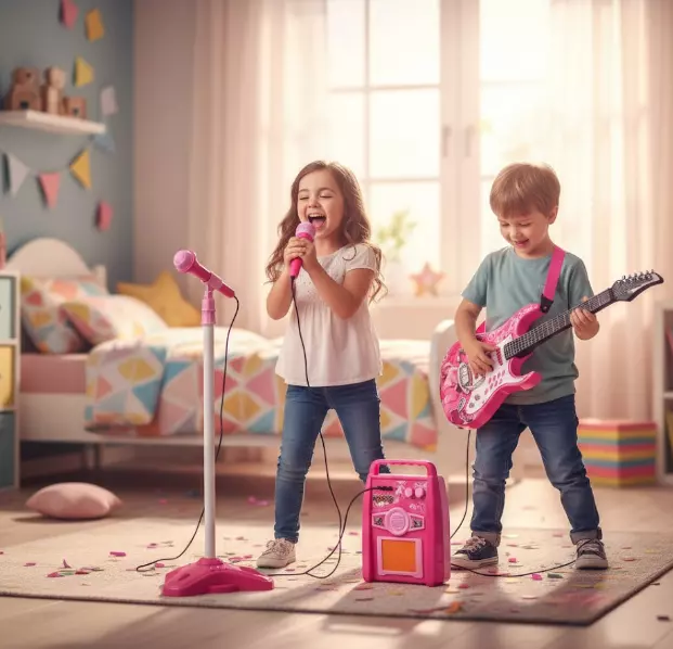 Підключений мікрофон дозволяє дитині чути свій голос під час виступу — як на справжній сцені!