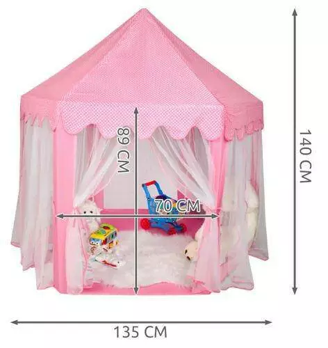 Розмір намету дозволяє кільком дітям перебувати у ньому одночасно. Палац має привабливий зовнішній вигляд. Шестикутна основа та дах у формі піраміди. Градинки можна зав'язувати у різний спосіб за допомогою декоративних стрічок. Вхід покритий напівпрозорими світловими завісами. Рожевий або синій колір обшивки в маленькі білі горошки, або в смужку, які надають естетичного вигляду. Можна використовувати як у будинку, так і на вулиці.