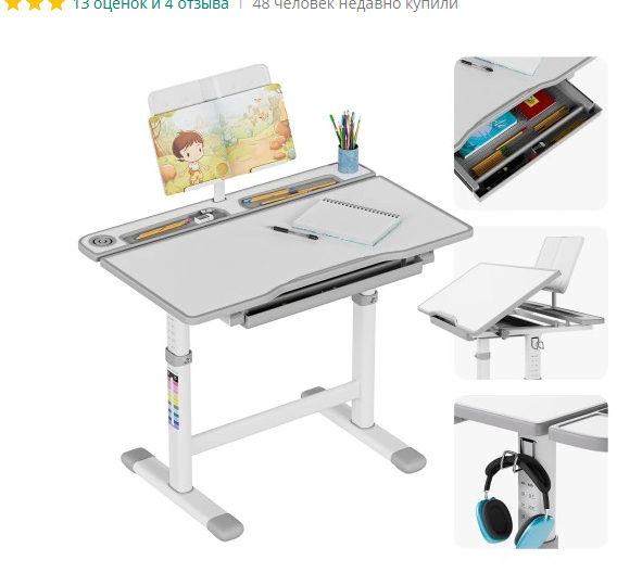 Цей стіл – ідеальне поєднання ергономіки, безпеки та функціональності. Регульована висота і нахил столешниці дозволяють дитині комфортно працювати, не перенапружуючи спину та зір. Місткі відділення та підставка для книг допомагають організувати робоче місце, а гачок і підставка для ніг роблять використання столу максимально зручним.