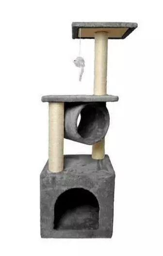 це багатофункціональний ігровий комплекс, що стане улюбленим місцем для вашої кішки. Він поєднує у собі комфортний відпочинок, активні ігри та догляд за кігтями. Завдяки стильному дизайну в темно-сірому кольорі, він гармонійно впишеться в будь-який інтер’єр.