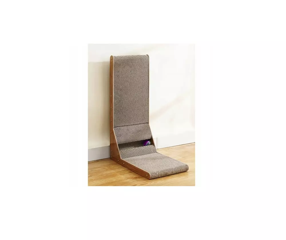 Виготовлена з якісного гофрокартону та міцної МДФ-основи, кігтеточка довговічна й стійка навіть до активних атак пухнастика.