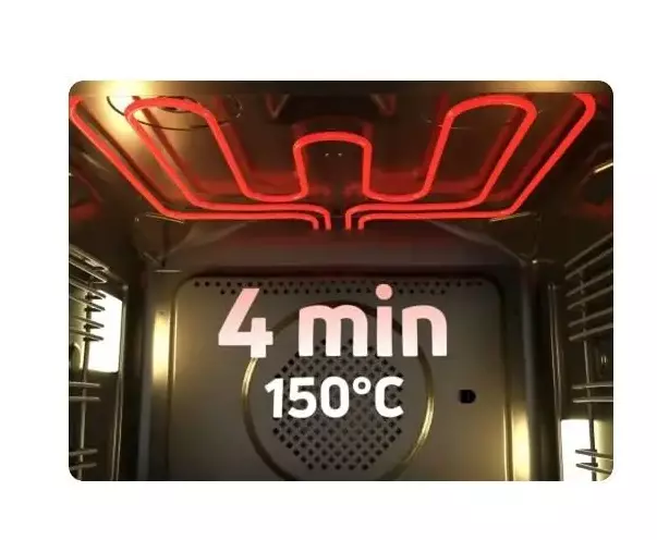 Ви постійно бігаєте і не встигаєте на все? Ця функція дозволяє дуже швидко нагріти духовку до вибраної температури. Він включає конвекційні нагрівачі та нижній нагрівач або посилений гриль і вентилятор, таким чином використовуючи всю потужність печі для швидкого нагріву камери. Ви можете включити духовку безпосередньо перед початком випічки та бути впевненим, що все буде зроблено вчасно!
