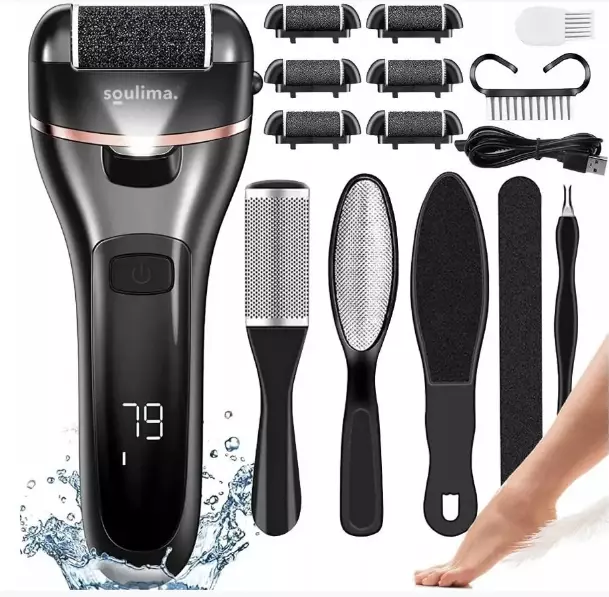 Цей багатофункціональний набір для педикюру – ідеальне рішення для швидкого та безпечного видалення сухої, огрубілої шкіри. Компактна електрична пилка з 6 змінними роликами допоможе легко позбутися мертвого епідермісу та тріщин на п’ятах – без болю та зайвих зусиль.