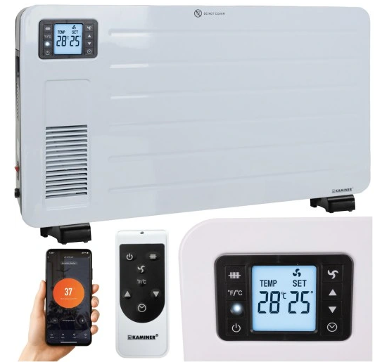 KAMINER ZIFLO — це інноваційний електричний конвектор, створений для ефективного, безпечного та економного обігріву приміщень. Оснащений потужністю 2300 Вт, він швидко нагріває повітря, а вбудований WiFi-модуль і пульт дистанційного керування забезпечують зручність управління з будь-якого місця.