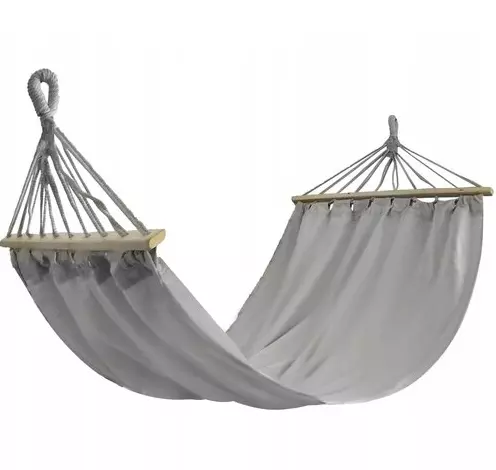Дерев'яні перекладини довжиною 100 см – завдяки їм гамак не згортається в кокон, забезпечуючи більше простору для відпочинку. Крім того, шнури не заплутуються, а вся конструкція стає ще зручнішою та надійнішою.