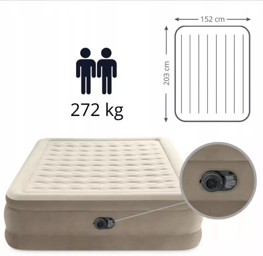 Гостьове ліжко-матрас надувний Intex для двох осіб (+ вмонтований електронасос)