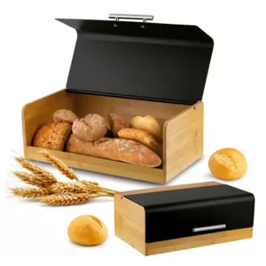 Хлібниця бамбукова з металевою кришкою DA510 — чорна
