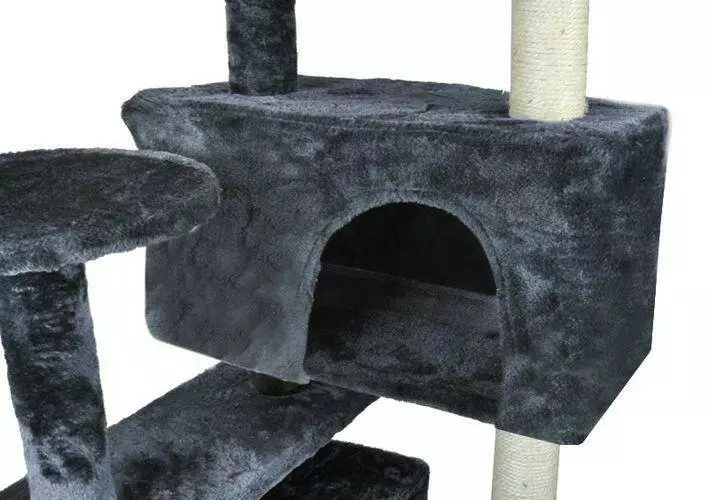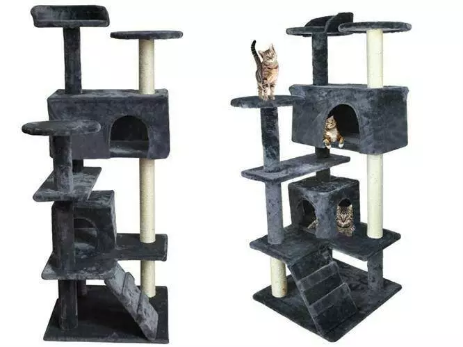 Цей багатофункціональний комплекс поєднує в собі все, що потрібно для активного дозвілля та комфортного сну кота: сходи, будиночки, м’які шезлонги, тераси й трубу для розваг.