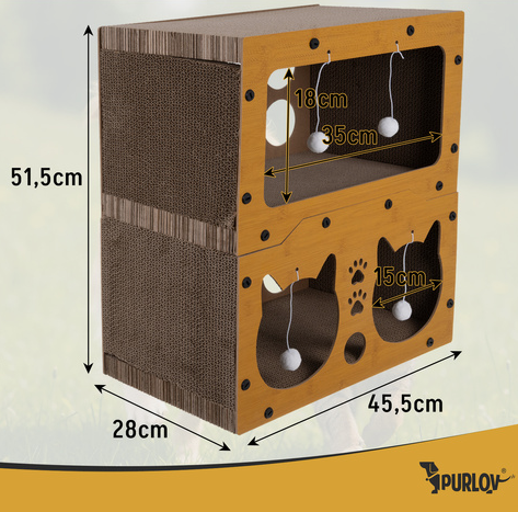 Кігтеточка Purlov для котів 3-в-1 — двоповерховий будиночок,