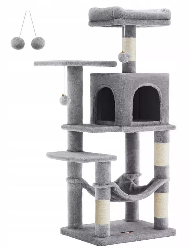 Подаруйте своєму улюбленцю власний затишний куточок! Ця стильна та міцна когтеточка поєднує у собі будиночок, м’яку лежанку, гамак та стовпчики для дряпання. Вона стане не лише улюбленим місцем котика, а й захистить ваші меблі від подряпин.