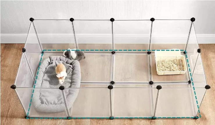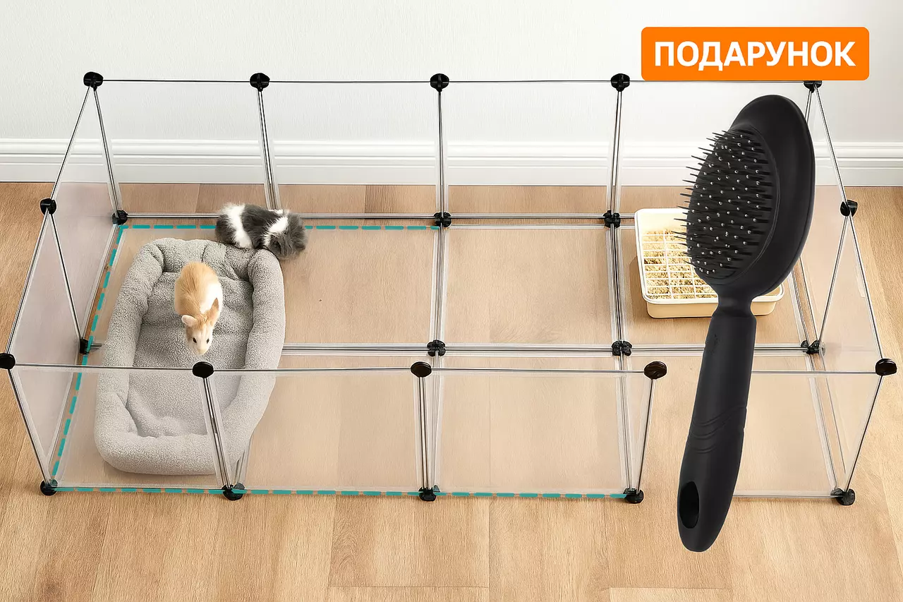 Цей загін створює безпечне, зручне та гігієнічне середовище для вашого пухнастого друга, не займаючи багато місця у квартирі.