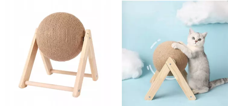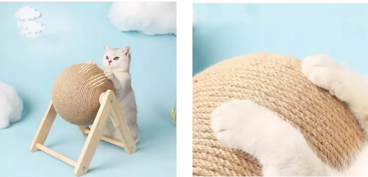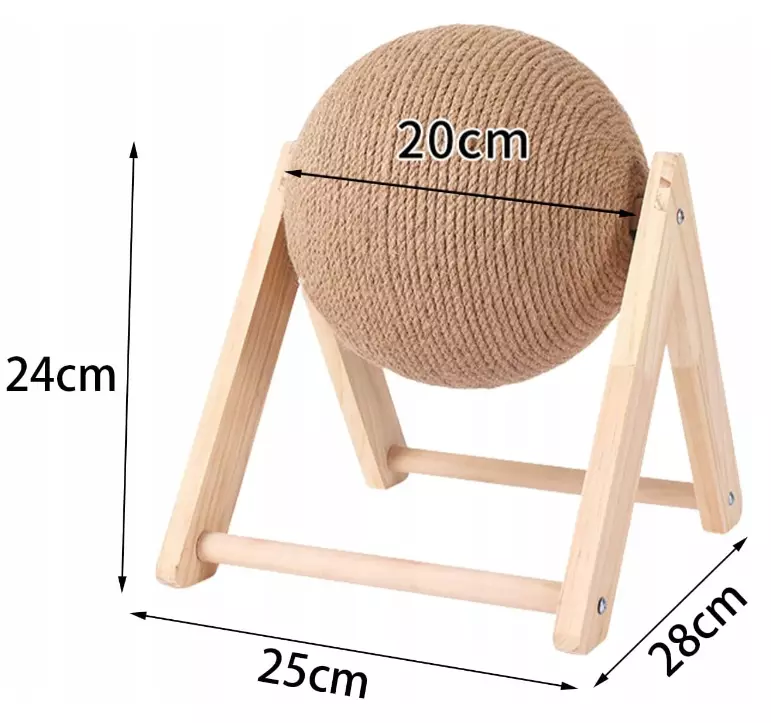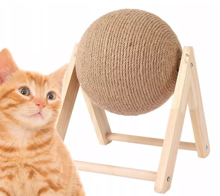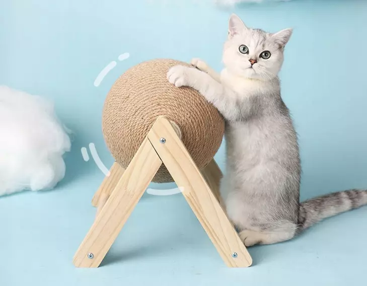 Сизалевий м’яч-когтеточка забезпечує цікаве проведення часу, стимулюючи активність тварини. Міцна дерев’яна основа гарантує стійкість, запобігаючи перекиданню іграшки під час гри.