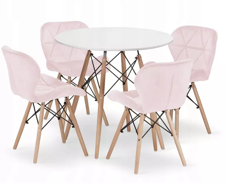 Стільці — рожевий колір, м’яке сидіння з бархатної тканини, ніжки з натурального бука.