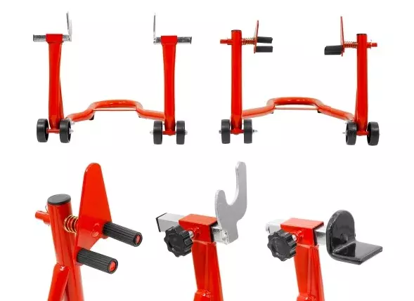 Цей універсальний комплект підставок стане незамінним помічником для будь-якого мотоцикліста — як у домашньому гаражі, так і у професійній майстерні. Він дозволяє легко піднімати мотоцикл з передньої та задньої сторони, забезпечуючи зручний доступ для обслуговування, ремонту, миття та зберігання.