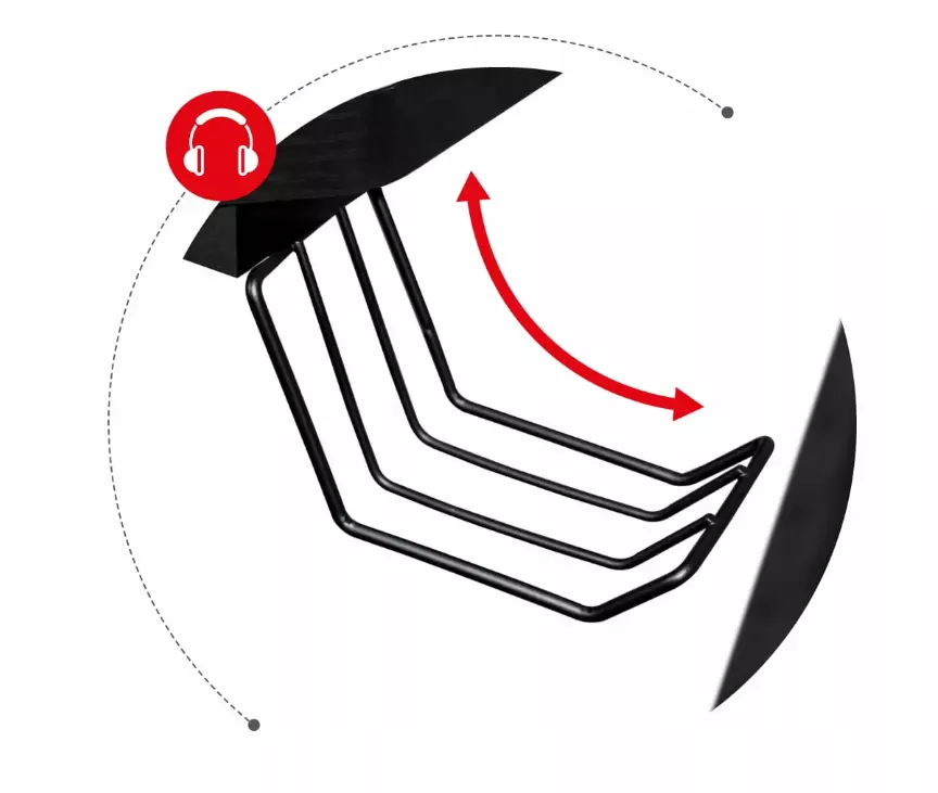 Зруний складний тримач дозволяє зберігати навушники під столом, заощаджуючи робочий простір.