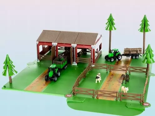 Реалістичні деталі – тварини з ПВХ, дерева з ПП, дві фермерські машини та різноманітні елементи створюють відчуття справжньої ферми.