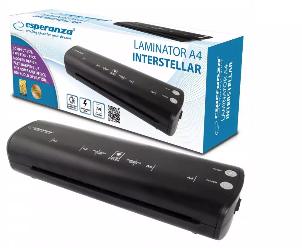 Ламінатор Esperanza INTERSTELLAR - ідеальний пристрій, який добре працюватиме як вдома, так і в невеликому офісі. Він безпечний і простий у використанні.