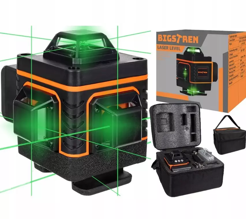 Лазерний рівень BIGSTREN 4D – це професійний інструмент для максимально точної розмітки, який стане незамінним помічником у будівельних, ремонтних та оздоблювальних роботах. Він створює 16 чітких зелених лазерних ліній (8 вертикальних та 8 горизонтальних), що формують повний огляд на 360°, дозволяючи працювати одночасно по всіх площинах без додаткових вимірювань.