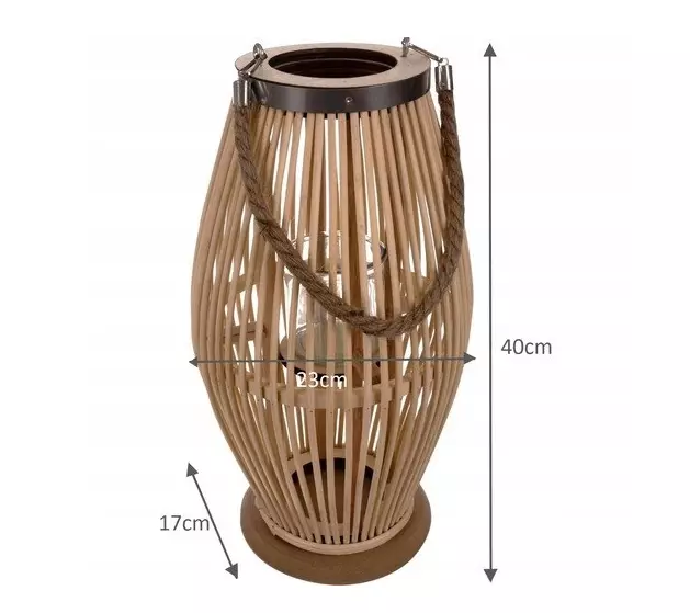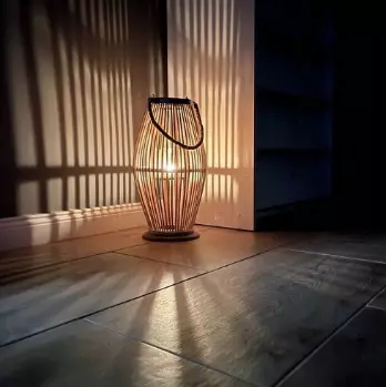 ЕЛЕГАНТНІСТЬ - стильний і міцний бамбуковий ліхтар є ідеальним поєднанням натуральних матеріалів з сучасним дизайном, який вписується в останні тенденції дизайну інтер'єру. Її вудилища виготовлені з високоякісного бамбука, що робить їх виключно легкими та водночас міцними. Бамбукові елементи акуратно кріпляться, створюючи гармонійну та унікальну конструкцію, що притягує погляд і надає характеру будь-якому інтер'єру.