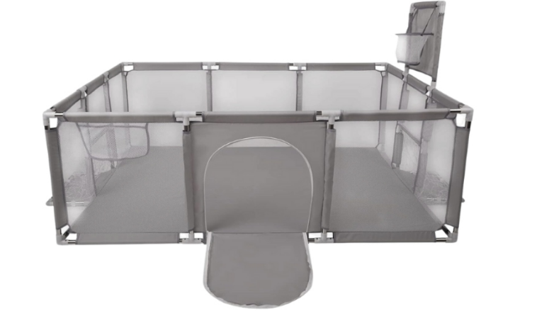 Цей дитячий манеж створено з урахуванням комфорту та безпеки малюка. Міцний металевий каркас забезпечує стійкість, а сучасний дизайн чудово вписується в будь-який інтер’єр.