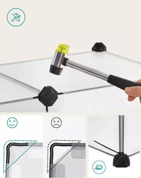 Стінки корпусу з'єднуються за допомогою пластикових з'єднувачів і хомутів. Це рішення дозволяє адаптувати форму огородженого простору до ваших потреб.