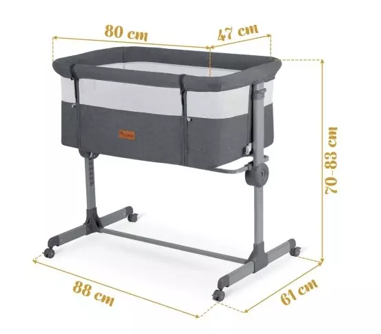 Регульована висота — ширина від ніжок батьківського ліжка від 70 до 83 см завдяки 7 рівням налаштувань; ліжечко «росте» разом із дитиною.