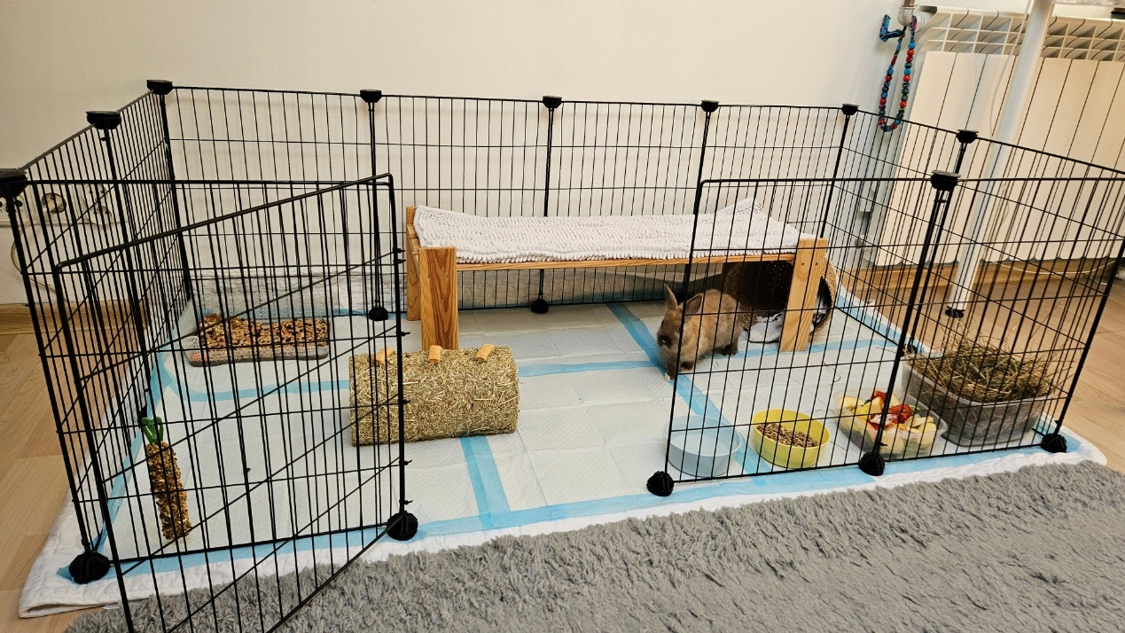 Вольєр можна встановлювати вдома або на подвір’ї — він захищає тварину від небезпек і допомагає уникнути випадкових пошкоджень меблів чи предметів інтер’єру.