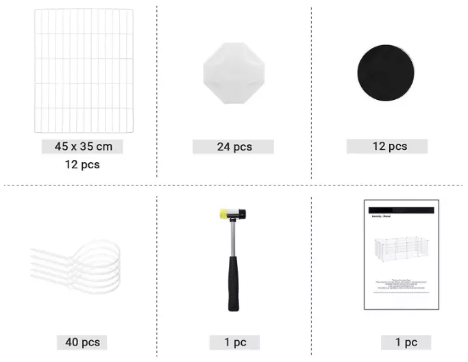 Манеж складається з 12 металевих панелей (35×45 см), які легко
