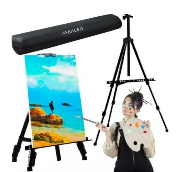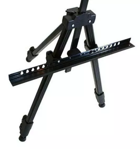 АЛЮМІНІЄВА КОНСТРУКЦІЯ - легкий і стійкий мольберт із заліза. Стаціонарний гак дозволяє підвісити баласт і збільшити вагу комплекту, що може полегшити роботу при сильному вітрі.