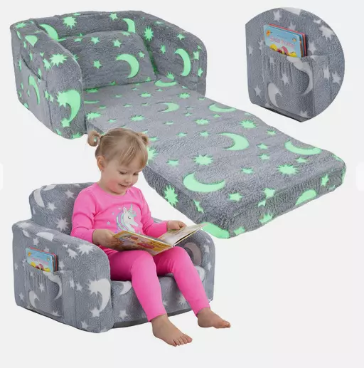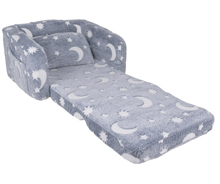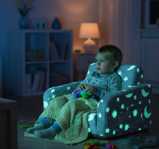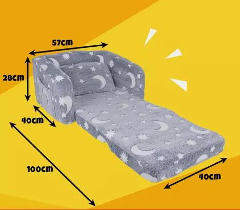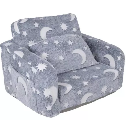 Це затишне плюшеве крісло поєднує в собі функції зручного сидіння та шезлонга, створюючи ідеальне місце для відпочинку, читання, ігор або перегляду мультфільмів. Легке, безпечне й зручне для самостійного використання дитиною, воно підходить як для дівчаток, так і для хлопчиків та гармонійно доповнює будь-який інтер’єр дитячої кімнати.