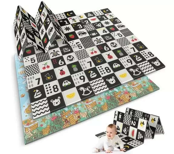 Цей великий двосторонній коврик розміром 180×200 см створений для того, щоб забезпечити вашому малюку максимальний комфорт під час ігор, навчання повзати або зайнять спортом. Завдяки унікальному дизайну та високоякісним матеріалам коврик поєднує функціональність, безпеку та естетику.