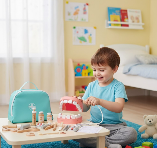 ✔ Розвиток через рольову гру — сприяє розвитку дрібної моторики, соціальних і емоційних навичок, допомагає подолати страх перед стоматологом.
