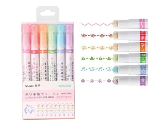 Створюйте яскраві малюнки, прикраси та нотатки разом із набором з 6 маркерів для візерунків! Кожен маркер має унікальну насадку, що дозволяє створювати оригінальні декоративні ефекти. Ідеально підходять для дітей, творчості, школи та оформлення записів.
