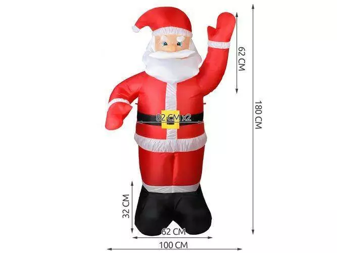 Створіть справжню новорічну атмосферу з нашим великим надувним Сантою висотою 1,8 м, який приверне увагу всіх навколо! Завдяки вбудованому LED-підсвічуванню він чарівно світиться у темряві, додаючи казкового сяйва вашим святковим декораціям.