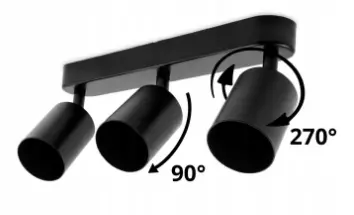 Галогенний стельовий світильник GU10, чорний, 3×10 Вт, поворотний,