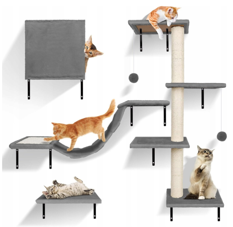 Усе в одному: 10 функціональних частин — гамак, полички, місток, когтеточки, лежанка та печера.