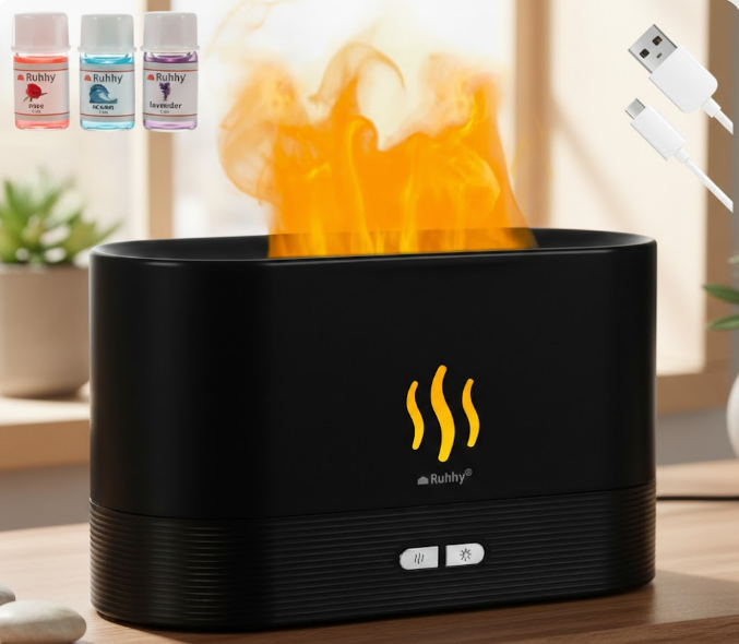 Сучасний аромадифузор-зволожувач 3-в-1 — це поєднання зволоження повітря, ароматерапії та декоративного освітлення. Завдяки реалістичному LED-ефекту палаючого вогню пристрій створює затишну атмосферу та сприяє розслабленню після напруженого дня.