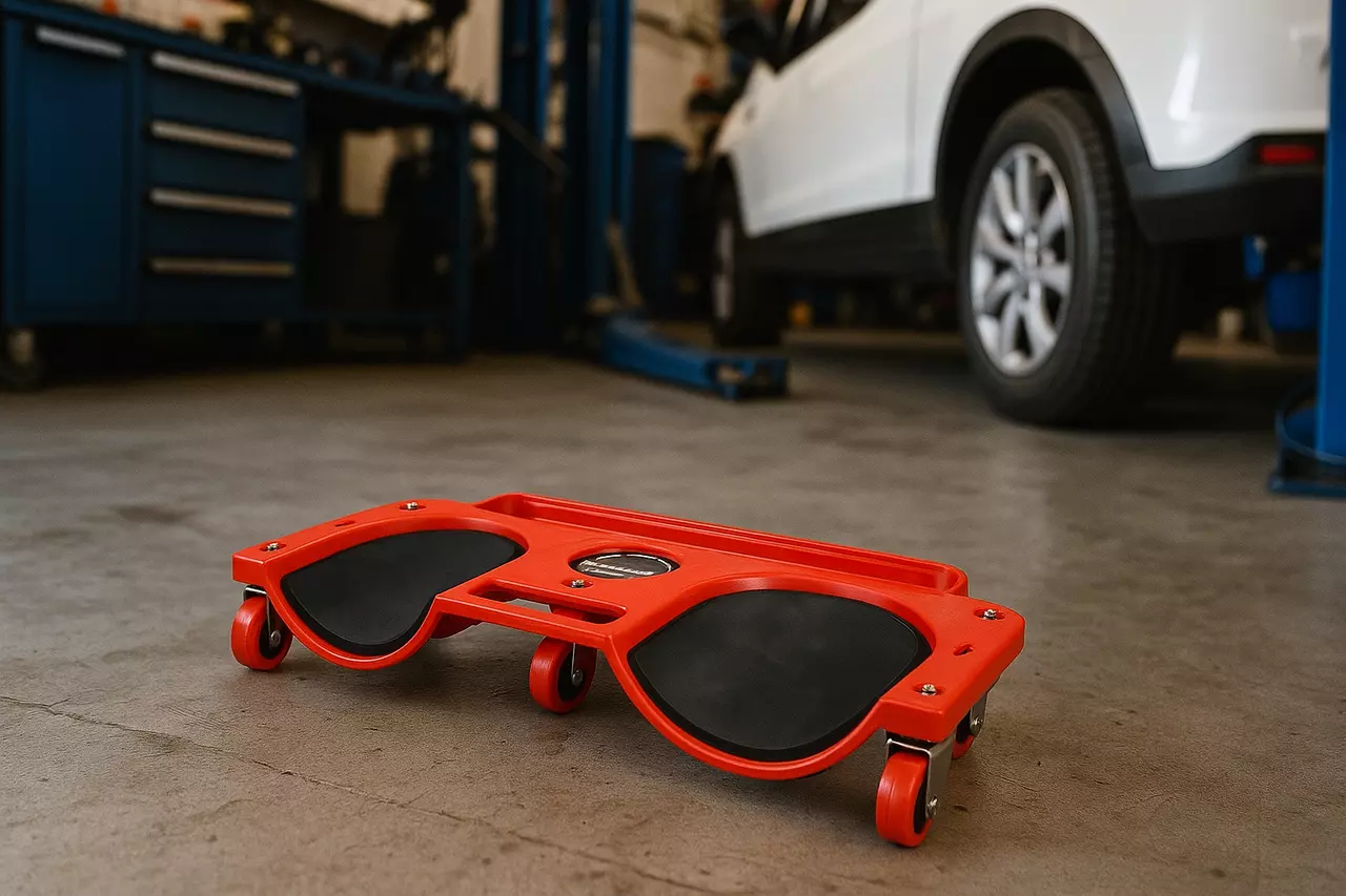 Підкат-наколінники для майстерні на колесах, з відсіком для інструментів