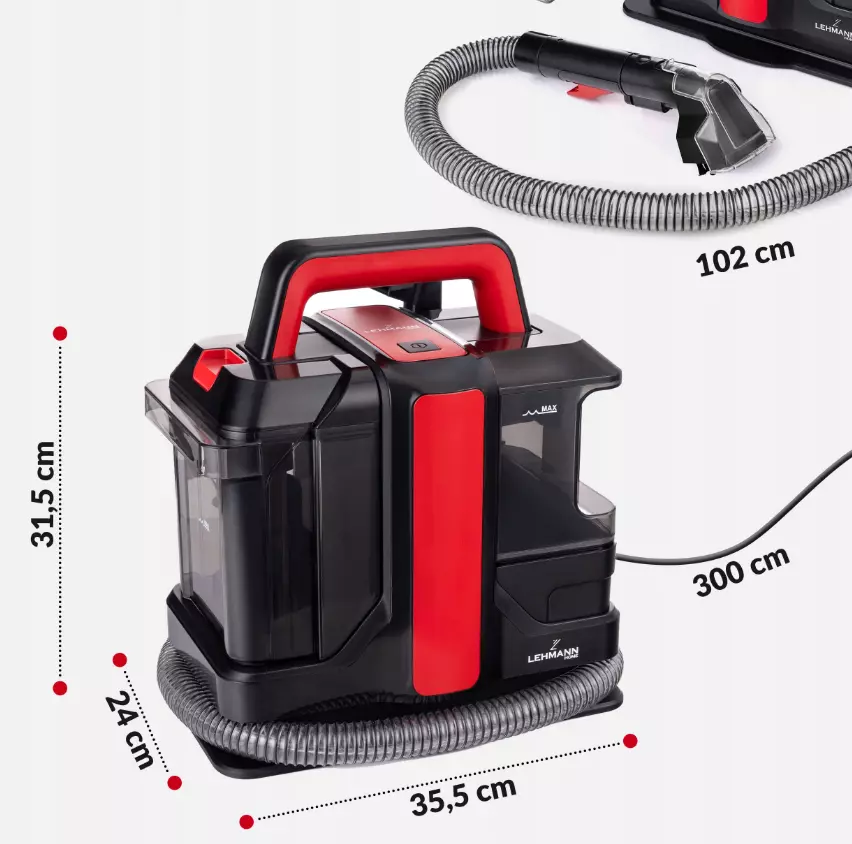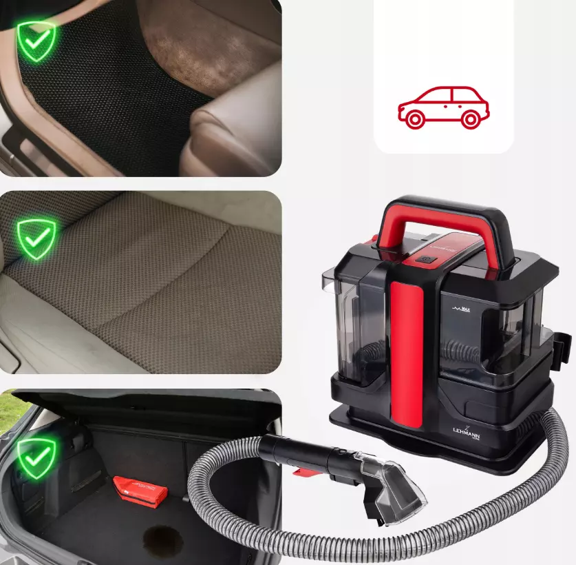 Lehmann EasyWash – універсальний миючий пилосос для килимів і м’яких меблів, який швидко та ефективно справляється з будь-яким забрудненням, забезпечуючи чистоту та свіжість вашого дому та автомобіля.