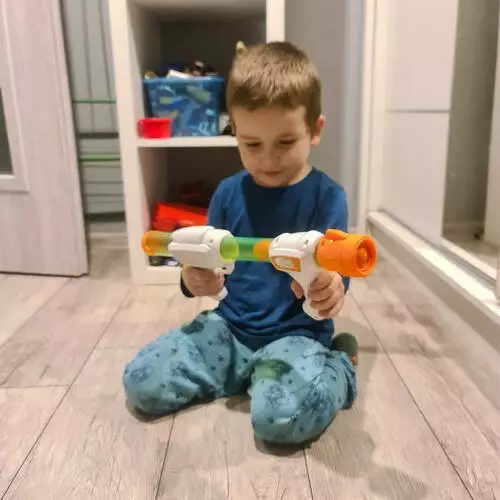 Гра з пневматичним пістолетом тренує концентрацію та покращує зорово-моторну координацію. Діти зможуть весело й безпечно стріляти по мішенях, влучаючи точно в ціль.