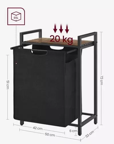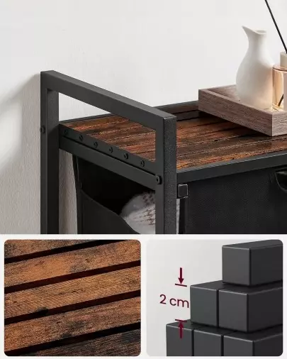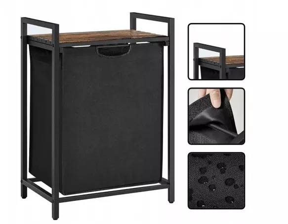 Додайте комфорту та порядку у свою ванну кімнату, пральню або спальню з окремою кошиком для білизни від бренду VASAGLE. Завдяки поєднанню чорного металу, коричневого МДФ та вінтажного дизайну, цей органайзер стане стильним акцентом у будь-якому інтер’єрі.