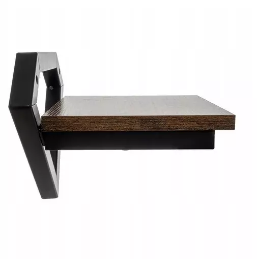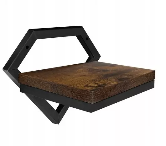 Сучасний дизайн – чорний матовий каркас з високоякісної сталі поєднується з полицею з МДФ, покритою деревним шпоном. Натуральна текстура дерева надає виробу тепла та природного вигляду, а ромбовидна форма каркаса підкреслює елегантність та сучасний стиль.